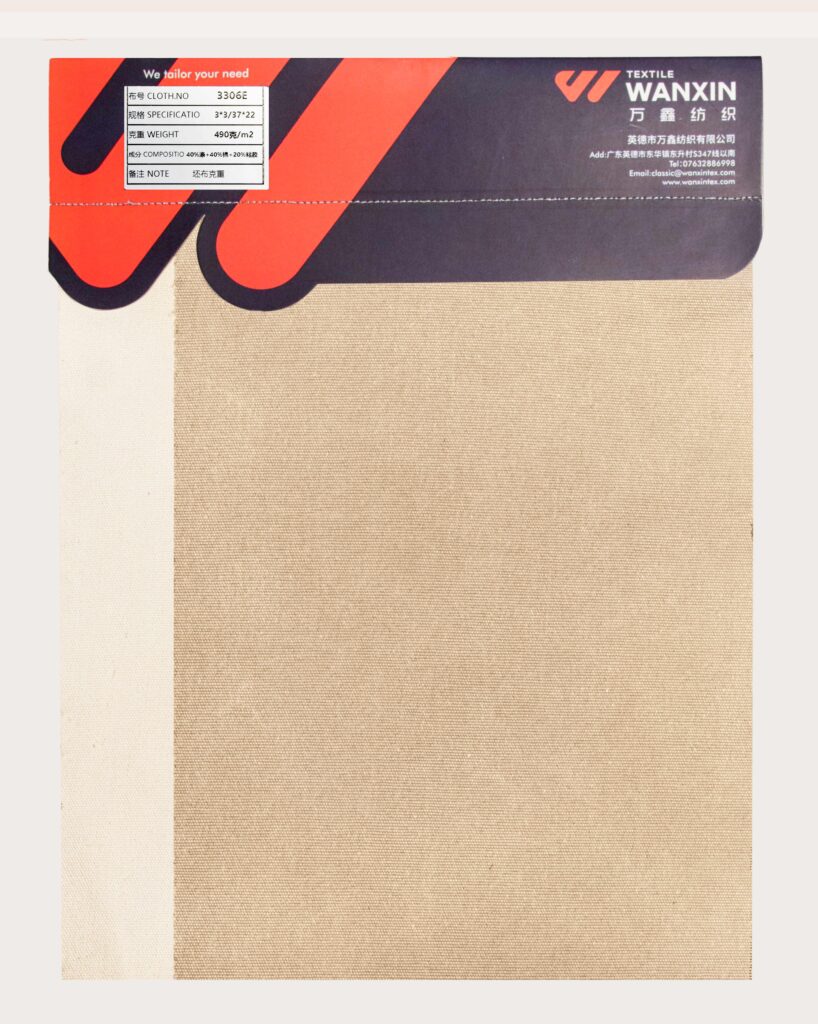 这款帆布面料由40%涤纶、40%棉和20%粘胶混纺,兼具耐用与舒适特性。棉带来柔软透气的天然触感;涤纶增强抗皱与耐磨性,延长使用寿命;粘胶增添丝滑质感与优雅垂感。整体质地坚韧而轻盈,适合打造实用百搭的帆布单品,如包袋或服饰,融合功能性与时尚感。
