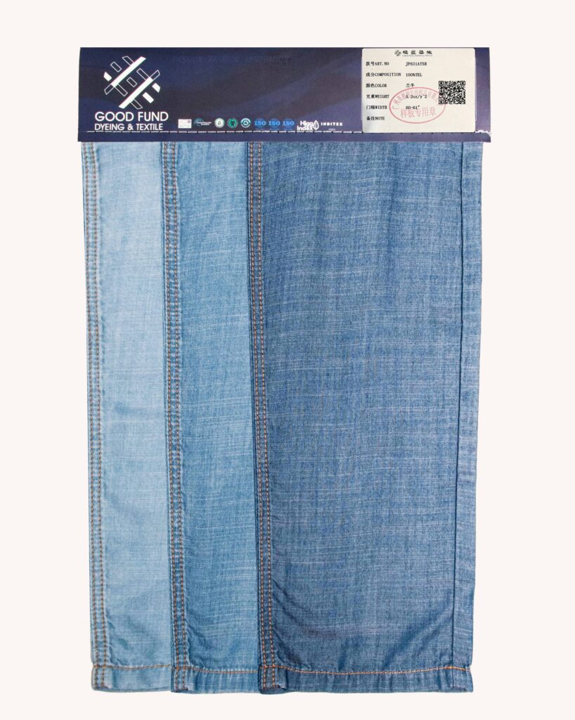 这款100%TEL(天丝纤维)面料以天丝制成,带来轻柔环保的极致体验。源自可持续原料,触感细腻,透气吸湿,穿着凉爽宜人;其自然光泽与流畅垂感为牛仔注入优雅气质。适合塑造轻盈舒适又具绿色时尚的单品,完美平衡环保理念与高级质感。