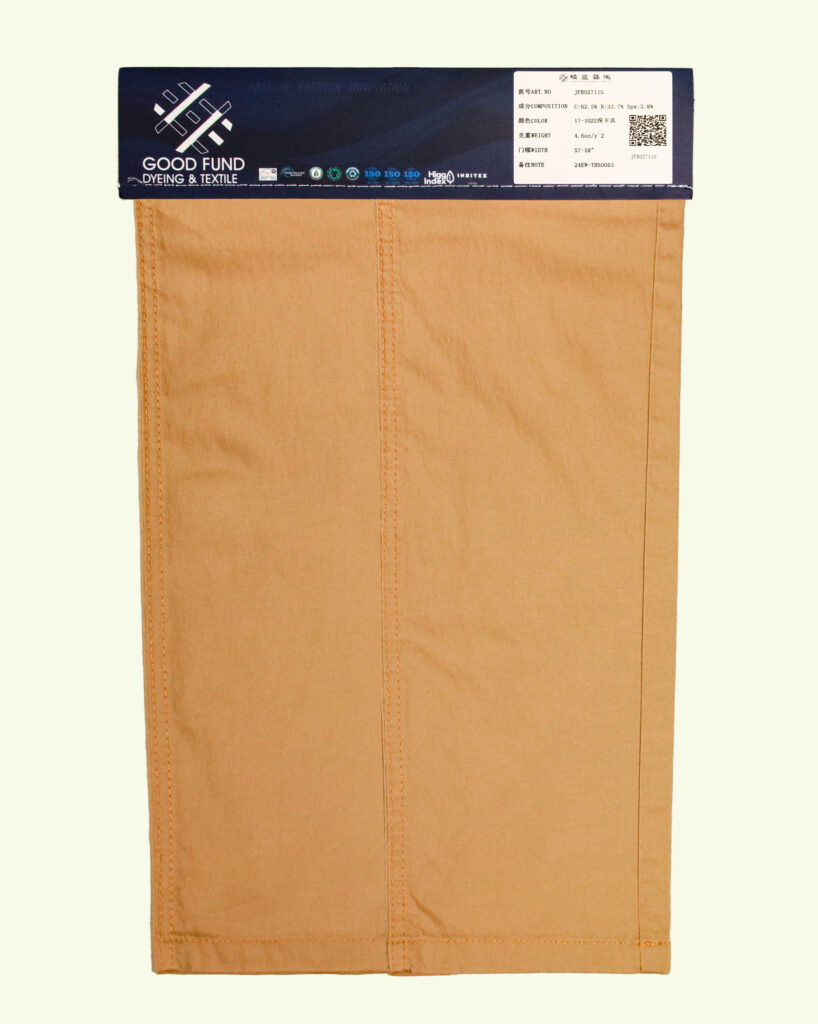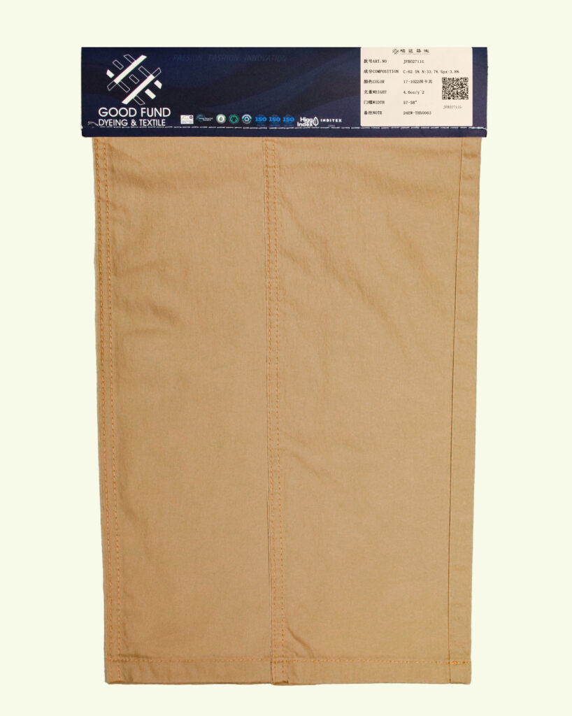 这款面料含62.5%棉(C)、33.7%尼龙(N)和3.8%氨纶(Spx),巧妙融合自然与功能。棉带来温和的触感与透气性,贴近肌肤;尼龙提升强度与抗磨损能力,耐久实用;氨纶增添适度弹力,穿着更灵活。面料轻韧兼备,适合塑造既舒适又有型的高性能面料单品,满足多样生活需求。
