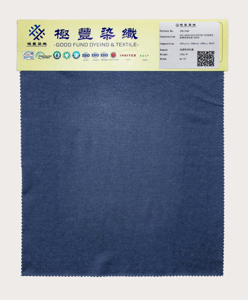 这款32%棉32%莫代尔30%涤纶6%氨纶凉感吸排抗菌针织面料,集清爽舒适与功能性于一身,带来全方位的穿着升级。凉感科技赋予面料冰爽触感,吸湿排汗迅速,保持干爽透气,夏日也能清凉无负担。抗菌性能有效抑制异味,持久清新,适合高频穿着。棉与莫代尔混纺柔软亲肤,触感丝滑;涤纶提升耐用性,抗皱耐磨;6%氨纶确保弹性贴合,活动自如。
