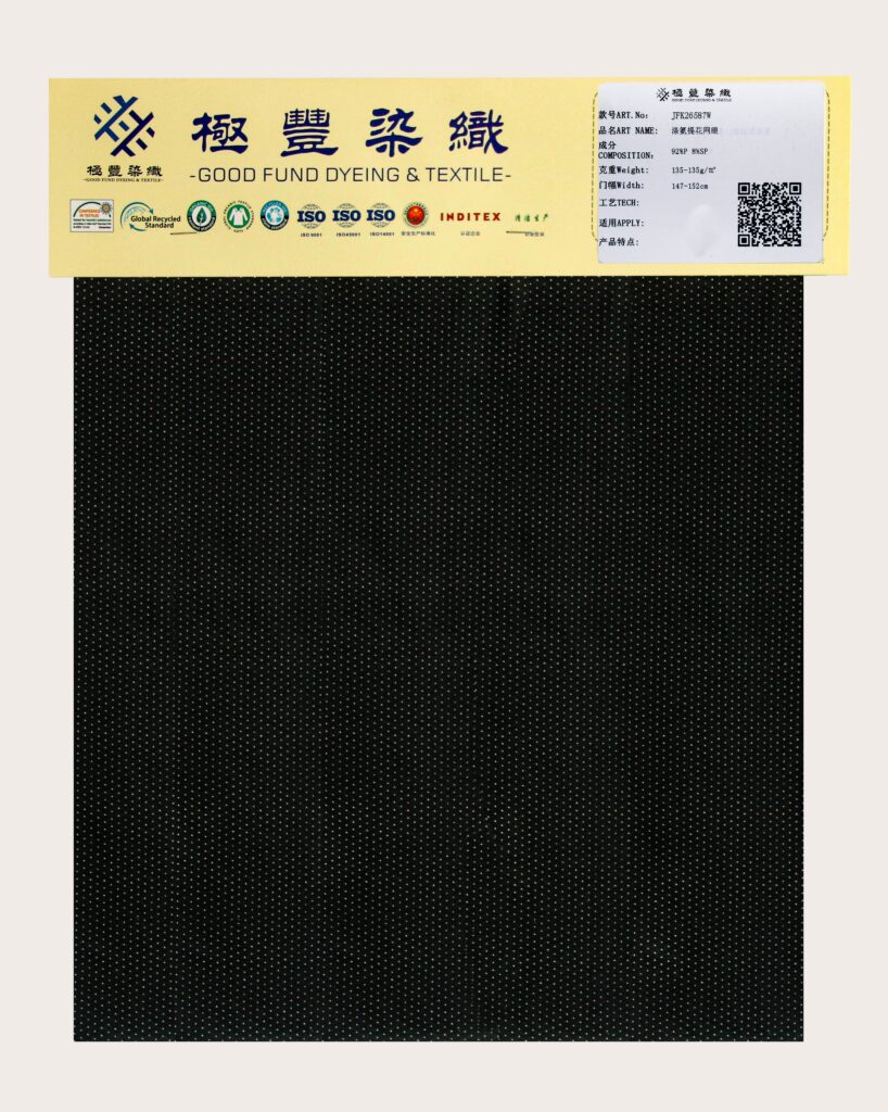 这款92%涤纶8%氨纶提花网眼针织面料,以独特的设计与卓越性能,点亮你的穿搭灵感。提花网眼工艺打造立体通透的纹理,时尚感十足,同时增强透气性,带来清爽干爽的穿着体验,特别适合温暖季节。8%氨纶赋予面料出色弹力,贴身舒适,灵活适应各种动作,塑造流畅身形。涤纶材质轻韧耐用,抗皱易打理,保持衣物长久精致。无论是运动风还是休闲造型,这款面料都能让每件单品兼具潮流与实用,展现自信风采!